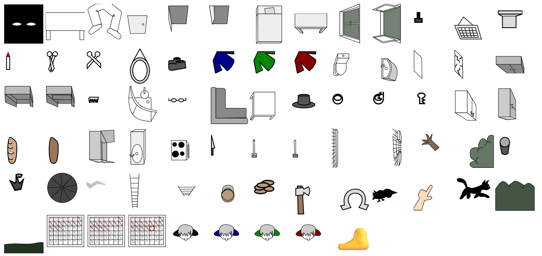 However, allowing the hero to actually move around the room was more complex. So complex that I considered not implementing it at all, but I finally decided to do this effort so we could realize two of the game's achievements (walk under a ladder and walk on a crack).